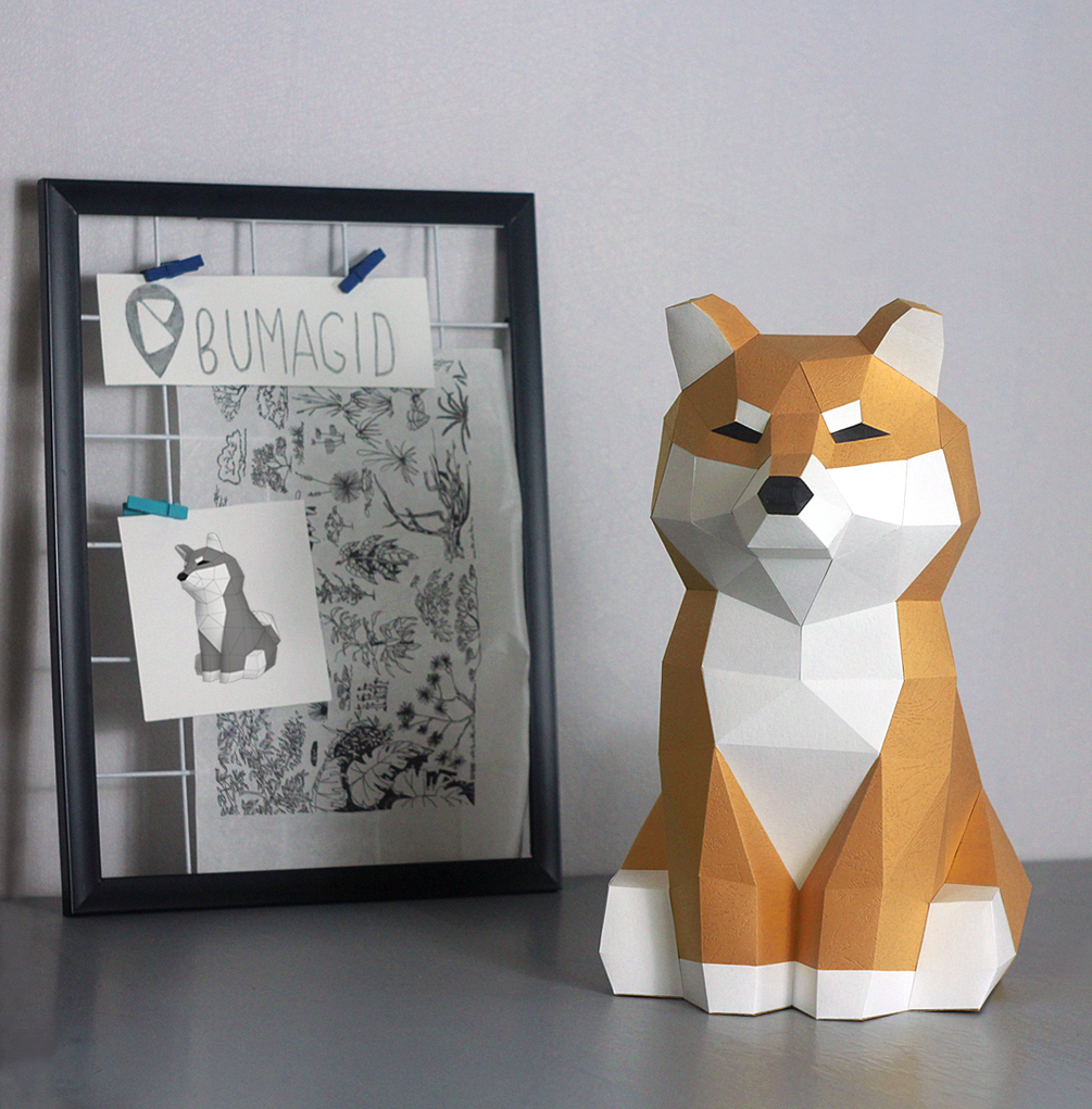 PDF Template paper model of a the Shiba and files for cutting machines. This product is designed for digital download to make your own sculpture out of paper.